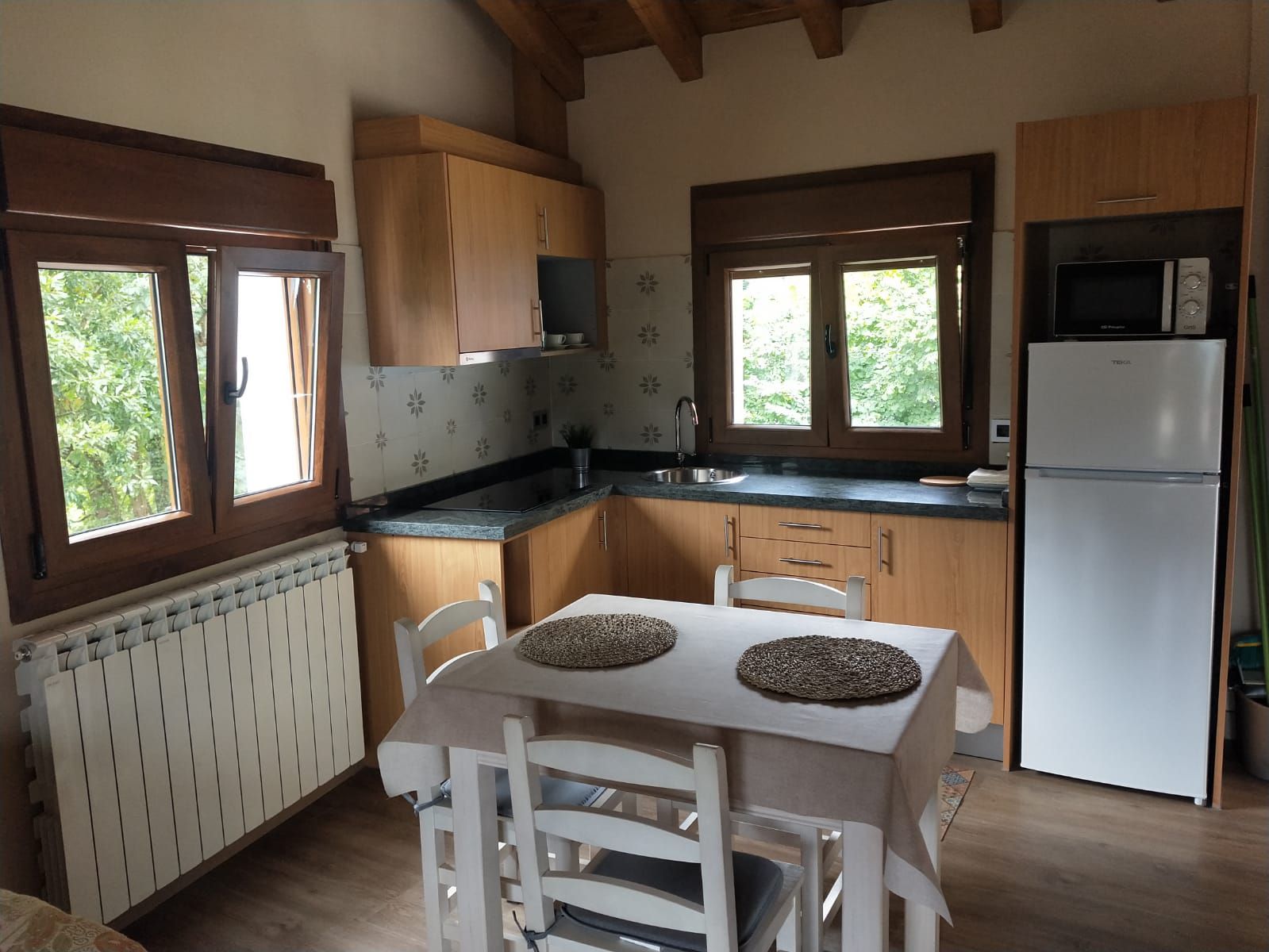 Este apartamento completamente rehabilitado en el 2023 e independiente, cuenta con una habitación con cama de 1,50cm, cama supletoria en el salón, cuarto de baño con plato de ducha amplio, cocina-salón, zona de terraza con vistas con mesa de jardín y zona para aparcar el coche.